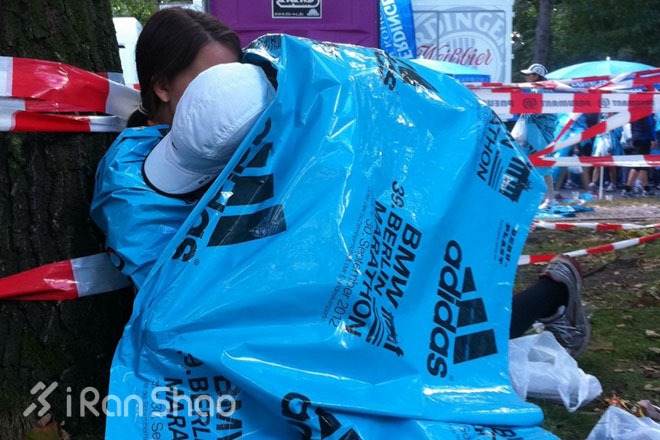 柏林马拉松终点偌大的蒂尔加藤公园草地为人们提供了极佳的阳光浴,把组委会提供保暖塑料布摊在地上,就是一个天然床第,可以坐着喝免费啤酒,躺着嗮太阳,当然也可以和这位老兄一样和妹子温存一番,哈哈。巴黎的终点运动员出口处设置一个巨大的电视转播墙,直播着冲线的实况,让翘首等待的亲人及时掌握完赛时间,在他(她)们出来的第一时间给予一个给力的拥抱和亲吻,想想这场景,满脑PB的我们跑得多么苦逼啊!