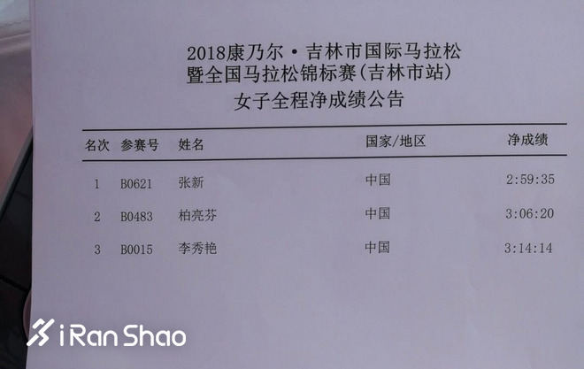 而吉林马拉松的男女前三名分别是: