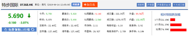特步6月12日股价突破5.92港币,创下历史最高位。