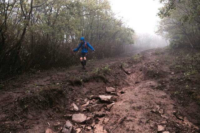整个赛道的难度不在于里程和累积爬升而在于地貌复杂,技术难度大。在开跑后的前6公里的海拔爬升超过1000米,32-37公里端爬升超过800米。部分地段上坡和下坡超过45度角。赛道上有碎石,大石头,泥土,树林,砂石等各类地貌。有3段下山由于倾斜角度过大,在坡道上站立都非常困难。