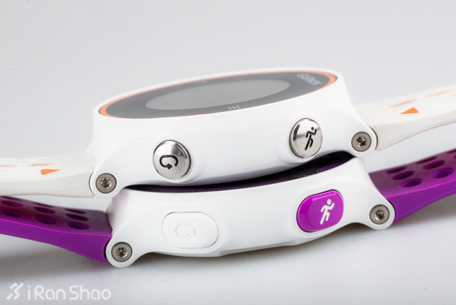 在手表关键的几项设计外观参数上,FR220与FR620就像双胞胎一样如出一辙,如果不是配色和按键的区分的话,几乎很难一眼看出两者的区别所在。而两者外观上最大的区别就在于FR620的屏幕除了彩色显示之外,加入了智能终端的重要标志之一,可触摸操控。虽然FR620所谓的触摸操控只是在屏幕几个固定的位置进行类似按键的操控,但也对实际的使用带来了更大的便捷,也让我们看到一款未来运动智能GPS手表的雏形。