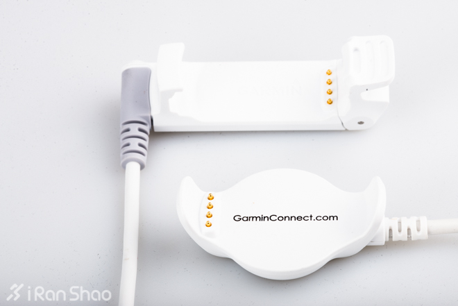 另一个区别较大的地方是FR220与FR620的数据线外接方式,FR220使用的是传统的背夹式设计,通过横贯表盘的数据夹来进行固定;而FR620则采用的是磁力托盘的设计,通过包裹表盘的磁性背盘来让数据接口保持稳定。