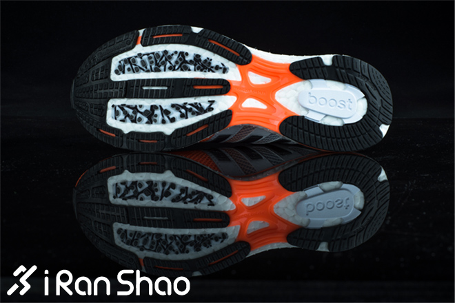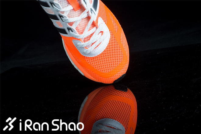 这款全新的adios boost与之前的最不一样的地方在于,中底没有完全使用BOOST 而是在上层部分使用了传统的EVA ,这样中底的机构以EVA为主支撑,BOOST材料为辅缓冲。而最大的好处其实是解决了一代adios boost 整个鞋子前掌贴地的问题,改善后的adios boost前掌微微上翘,符合运动习惯,加快运动反应。
