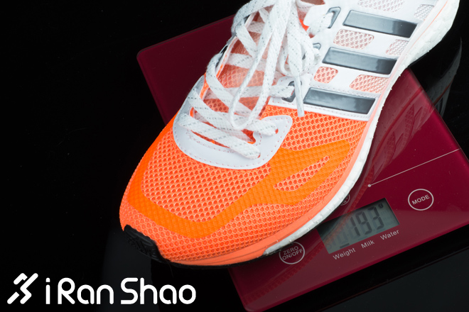 新配色的BOOST 依旧保持它清新亮丽的配色,单只193g的重量不算特别重,但是按照现在跑鞋越做越轻的趋势,adios boost在追求超轻的路上突然理性的停下了脚步,毕竟“轻”不是全部,一双鞋子最重要的还是性能。
