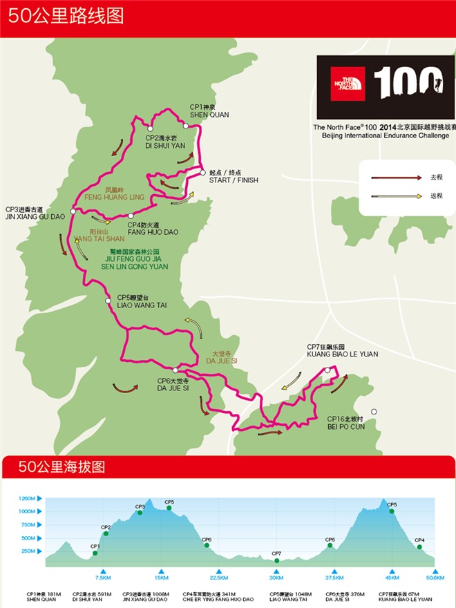 2014年TNF100将在北京海淀区凤凰岭公园举行。其中,100公里组赛道累积爬升达到6999米,堪称亚太地区强度最大的赛道。路线穿越北京西山,有古道、园林、名刹,全程关门时间30个小时,让更多跑友有机会亲身参与体验100公里赛事。50公里组累积爬升3499米,关门时间15小时。