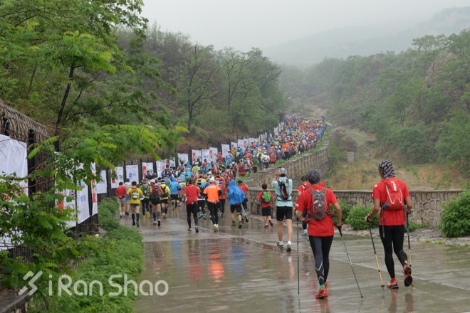 24日天刚蒙蒙亮,小雨还在淅淅沥沥下个不停,位于北京海淀区的凤凰岭景区已人声鼎沸非常热闹,数百名参加TNF100越野比赛100公里和50公里组的从各地赶来。水袋包、压缩裤、风衣、遮阳帽、太阳镜每个人都武装到牙齿,就像出征前的战士,摩拳擦掌准备面对接下来的“恶战”。