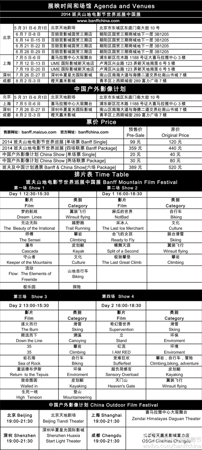 相关展映与中国户外影像计划的详细信息请参阅班夫山地电影节中国官网
