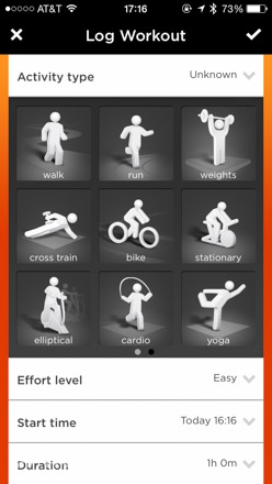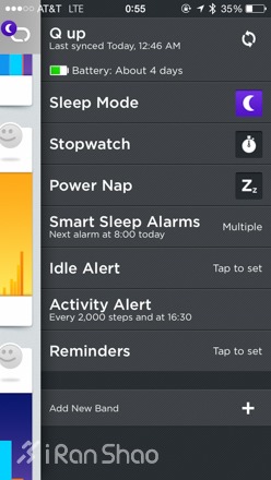 简单说来,UP的主要功能:追踪睡眠,追踪运动(主要是计步)和震动。听起来比较单调无聊,但组合起来却还不错,目标都是督促使用者规律、健康的生活。除了可以在最优时间唤醒之外,震动功能基础上有Idle Alert(设定一定时间内必须起身运动)防止久坐不动,Activity Alert督促定时运动,Reminder提醒按时规律吃药、起床、睡觉。另外还有 Stop Watch(类似秒表) 记录特定类型的运动数据,比如跑步、瑜伽、篮球等等,在Stop Watch模式下,UP能根据运动类型、强度计算卡路里,提供速度数据。