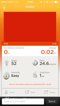 除了外观,还需要注意它的做工和质量问题。首先,UP虽然有防汗防溅水功能,但并不能浸到水里或者在洗澡时佩戴。材质上,UP的橡胶只能承受有限程度的拉伸。而质保方面,目前UP提供60天退款,一年有限质保。我大概用了五天,橘红色的手环边缘已经开始发灰,所以我比较担心手环的清洁问题。因此虽然目前UP24有红色,玫红和柠檬绿几个选择,但选择黑色大概还是最耐用可靠的。