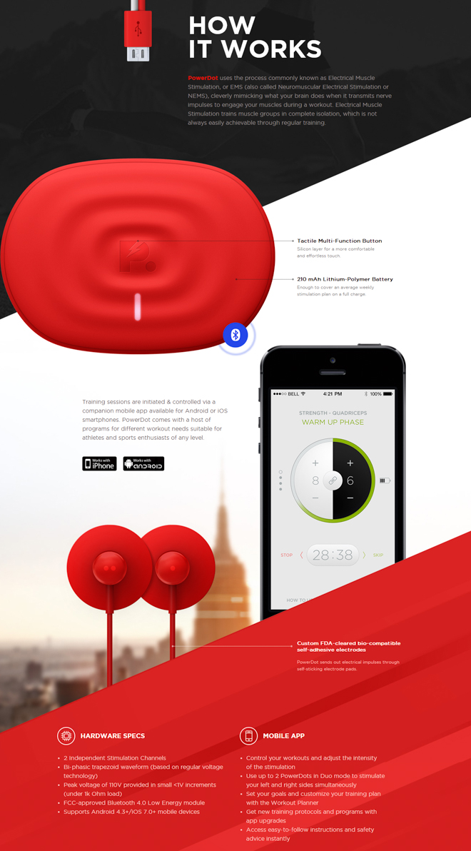 SmartMio的推出,使它成为了第一款智能可穿戴的肌肉刺激产品,在经过蓝牙配对后,使用手机上的app来进行SmartMio在速度,力量以及运动时间上的控制,并实事查看每块肌肉的锻炼程度和当日的锻炼效果。