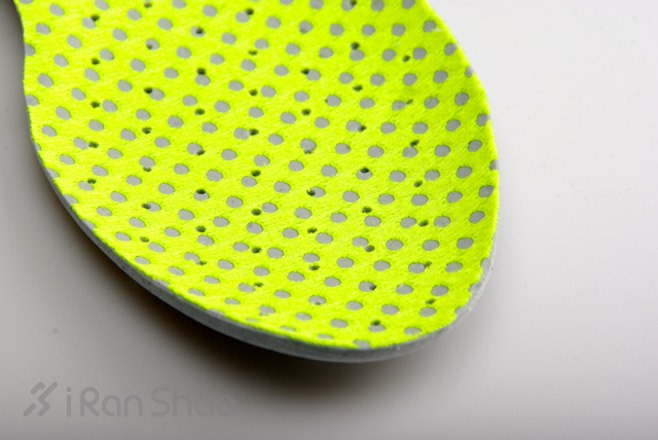 鞋垫不光做了打孔的透气设计,还采用了仿麻的材料。虽然不能降温,但由于较光滑所以会从体感上感觉更凉爽一些。