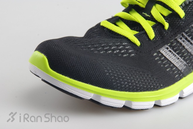 标准的阿迪达斯的黑色鞋盒。鞋子是黑色,绿色,白色的配色。鞋身设计没有特别之处,并不出挑。