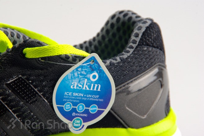 鞋面采用了定制的三明治网格布,没有任何拼接工艺。在脚面和侧边最大程度设计了孔洞用于散热和排汗。其采用的 askin 技术主要指采用的三明治网布。由于更多孔洞和摸上去的光滑感觉会感觉比较凉爽。这是这款鞋的.