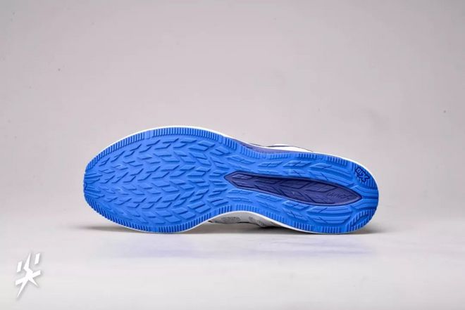 鞋底采用一片式外底,外底表面被分割成许多突起的小块,提高了抓地力和外底弯折性。