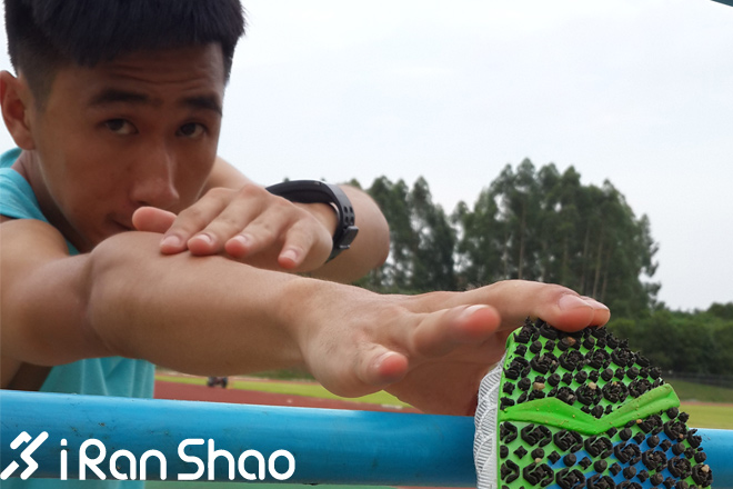 第一次穿上鞋子训练是在学校的塑胶跑道上,穿上这双鞋就像穿着钉鞋一样。这双鞋子完全可以作为代替钉鞋作为中长跑比赛的比赛用鞋。鞋面的设计十分贴合脚面,加上鞋子前掌和后掌有一定的落差设置,在短距离内其鞋底的回弹性十分出色,加上鞋底前掌处的竞速耐磨外底与塑胶跑道完美贴合,作为一个前掌着地,追求速度的跑者,我对这双鞋子在跑道上的脚感是十分满意的,感觉每一步的效率都十分高。所以在场地上可能很轻松的就能达到3分40每公里的速度。