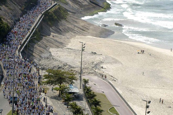 巴西里约热内卢马拉松在世界杯球迷的狂欢之后两周火辣上场,2014年7月27日的赛事包括全程马拉松,半程马拉松及6公里奥距家庭跑。全程马拉松的关门时间设定为6个小时。