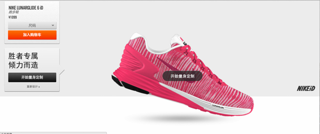 首先进入NIKEiD页面选择定制Lunarglide 6 iD。
