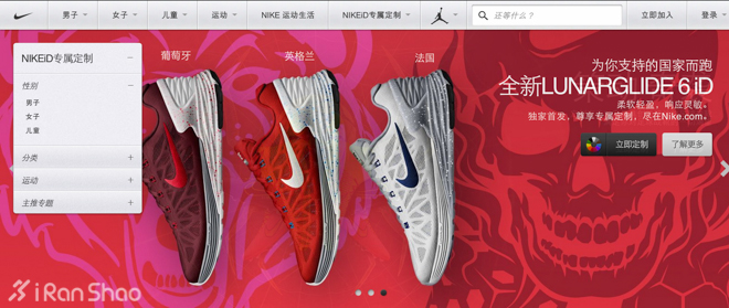 全新上市的采用登月科技的Lunarglide 6跑鞋同样在NIKEiD上定制出你心仪球队的配色与样式。Nike官方给出了我们部分由设计师设计的国家队配色样板参考。