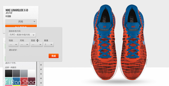 最后输入定制者的尺码,Lunarglide 6 iD提供了宽脚掌的特别尺码,这对宽脚型的朋友们来说真的是莫大的福音。