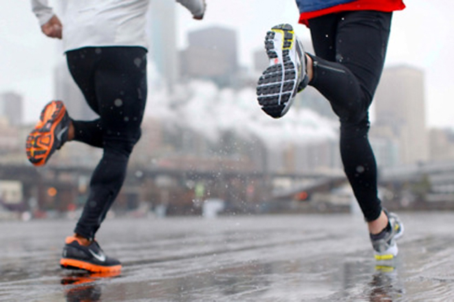 跑者最重要的装备当然是跑鞋,有些跑鞋在灌水后会特别沉,所以雨天跑步推荐使用铁人三项专用跑步鞋,一般铁三跑鞋会在鞋底设计排水槽,用在雨天训练可以较好的解决跑鞋的大问题。另外选择穿件防雨的风衣,如果天气闷热穿件快干的T恤或背心。最重要是保护视线,为了防止雨水直接打在眼里,一顶宽沿的太阳帽是个好帮手。
