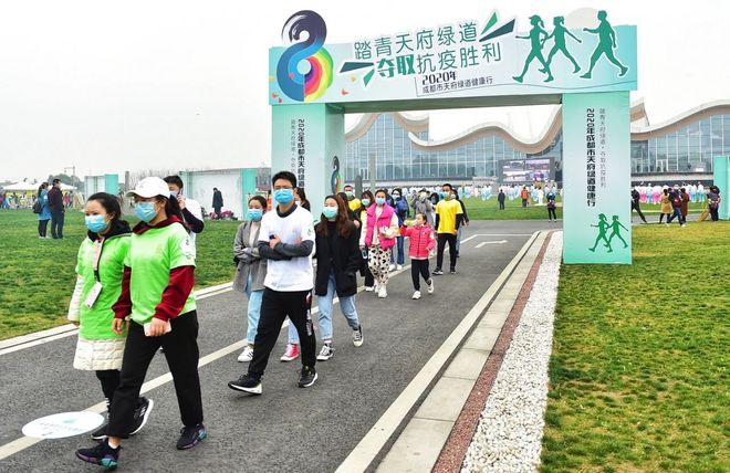 早在一周前,成都下辖的崇州、都江堰、彭州和蒲江四个“无疫地区”就各自举办了200人左右的“绿道健康行”活动,涉及徒步、骑行、太极拳等运动。在活动当天,参加活动的市民均需出示健康码并佩戴口罩,保持间距,通过体温测量后入场。