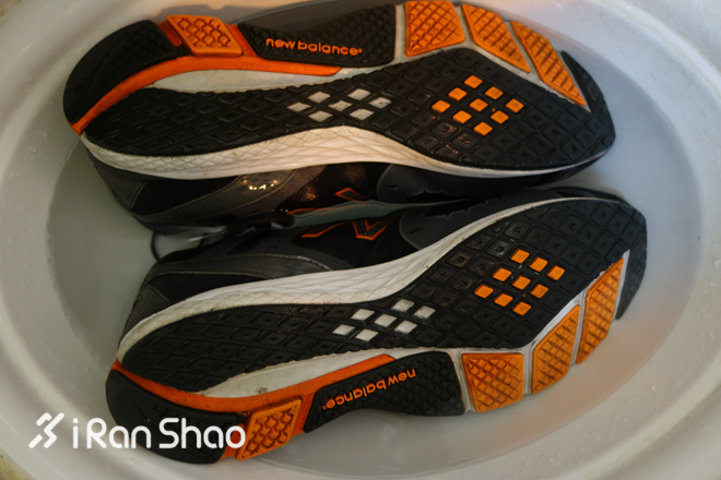 有些时候脏污附着在鞋面上,可以调配温和的洗涤液进行短时间浸泡,一般浸泡时间不要超过15分钟。