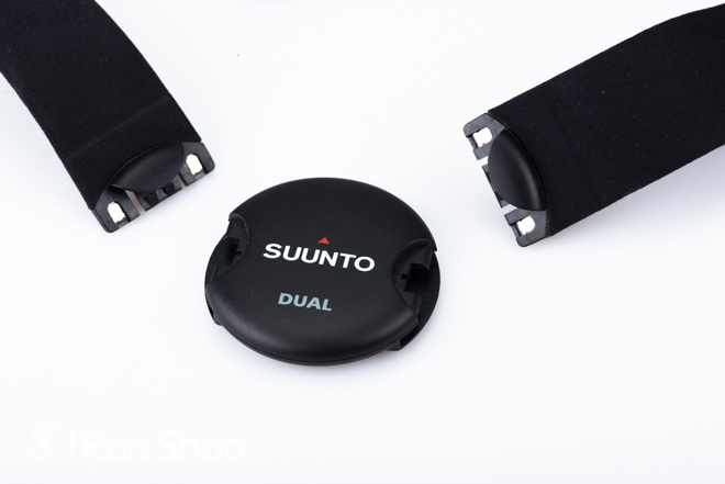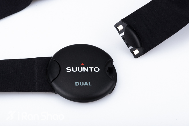 SUUNTO DUAL心率带的设计十分独特,圆形心率仪的两头用于连接弹力胸带,这样的话佩戴起来比传统的心率带更为方便。但硬质的心率仪直接接触到皮肤,长时间佩戴带来的摩擦应该会是个不小的麻烦。