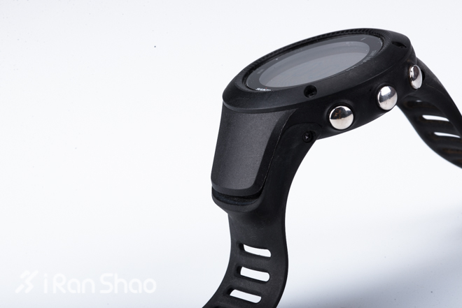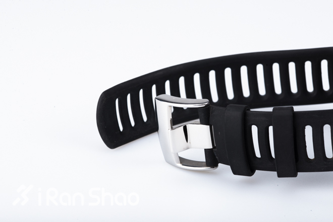 AMBIT2 R在表盘下方与表带的连接处放置了GPS芯片,这个弧形结构的腕带设计,配合相对较软的橡胶表带,是小编所佩戴过的所有运动手表中舒适感最佳的;同时宽扁式扣孔也更加方便佩戴与调整。