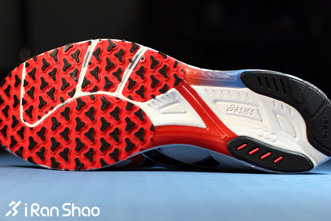 ASICS TARTHERZEAL 微量射出中底是其他品牌模仿的典范,微量射出的中底颗粒轻量,抓地性好,但是耐磨性能相对大块的橡胶自然有出入,但是足够提供给不频繁的比赛使用。