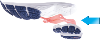 XETIC科技使用“auxetic materials”(拉胀材料),通过实验分析不同类型跑者跑动细节在结构上进行改进并最终研发而成。XETIC科技外形上呈现出如同横放的数字8形状。