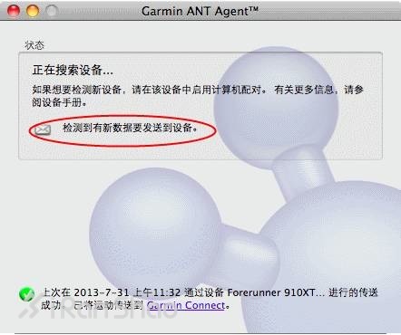 5. 将USB ANT Stick插入电脑USB口,打开Garmin ANT Agent,可以看到提示有更新内容。