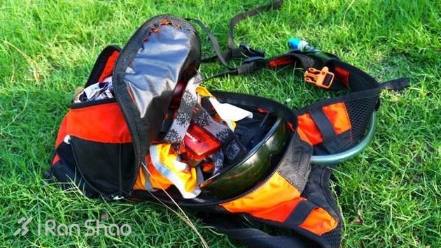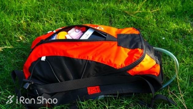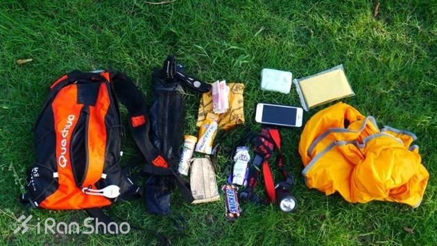 水袋包只有两个拉链口袋,所有东西只能大致分类来往里塞了。头灯,皮肤风衣,墨镜之类的拿的次数比较少的可以塞在后边的大包。